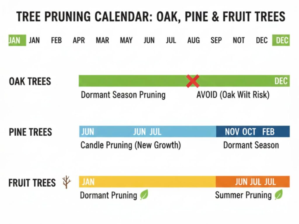 Cutting at the wrong time can stress a tree or invite pests. The timing depends heavily on the species.